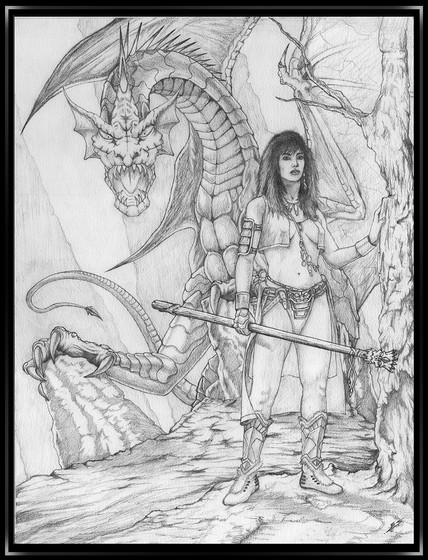 Female fantasy dragon rider. Pencils on bristol.Related content