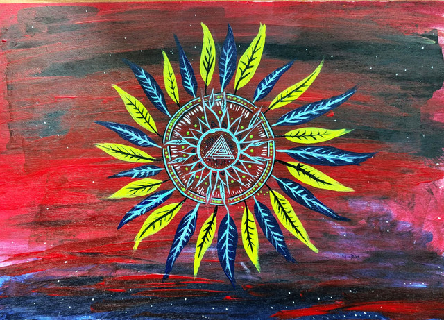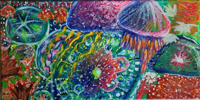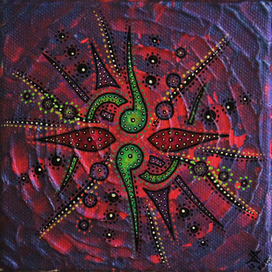 œuvre réalisée à la peinture acrylique ( pébéo, studio ) et au Posca sur Toile Canson texture lin.