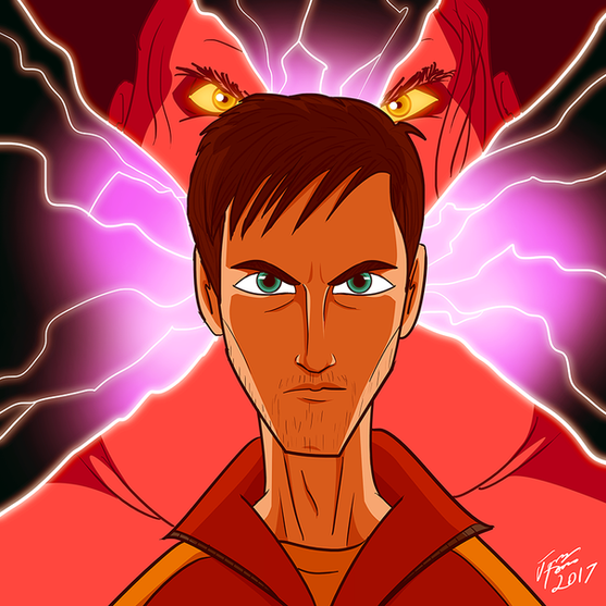 I'm not too familiar with this version of the character, but he does defiantly look interesting. Great job on the lighting. It really improves the scene. The fire looks fantastic as well.