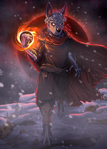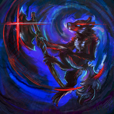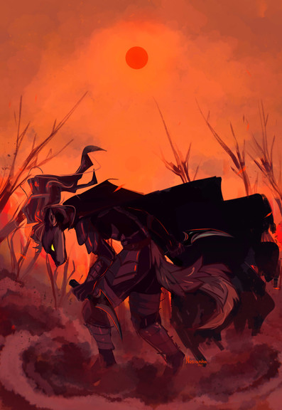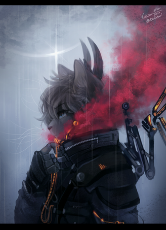 A commission for ~GlitchemHe gave me his simpleβbut effective!βcharacter design, and a simple idea, "something relating to fire", and I got to decide the rest.