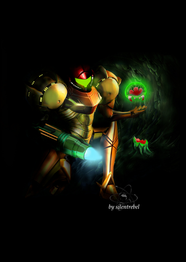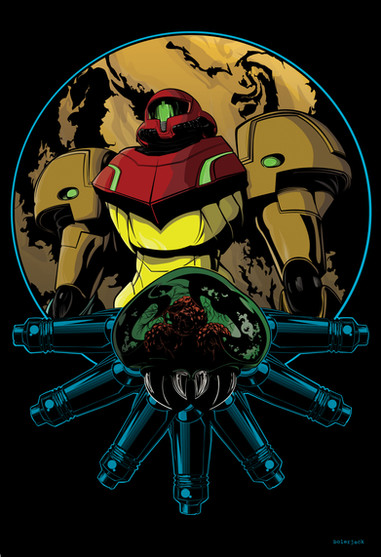 Quite nice. I'm the not the biggest fan of the cannons behind the Metroid but the Metroid, Samus, Their pose, and their juxtaposition is well put and well done.