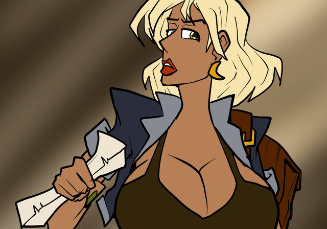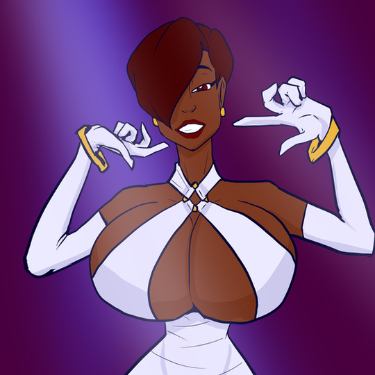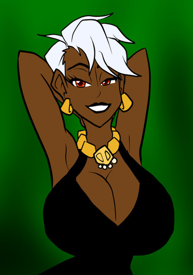 I'm really diggin' her design, outfit, and overall look. That expression is a tantalizing blend of mischievous, sexy and cute (dat lip bite...), and the... ah... "bulge factor" she's rocking with that top is just eye-popping. >>;