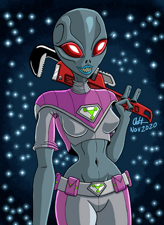 adopted this character from my Area 51 Breakout set --> www.deviantart.com/jonfreeman/…Blu, it's a short gray with a grudge ... she doesn't have a probe, but she'll make do with what she found. www.bibliotecapleyades.net/vid…