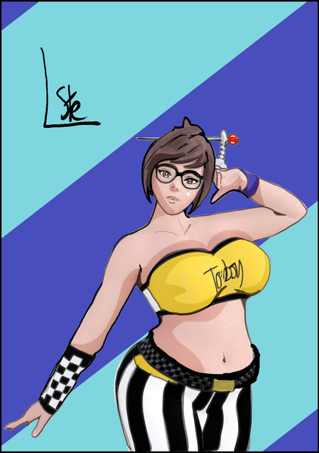 So here's this week's print!Β It's Mei from Overwatch, sporting her preproduction concept art tanktop.Β ^_^+$5 patrons will be getting the full 11x17" digital print file of this at month's end, along with all the other prints of the month.