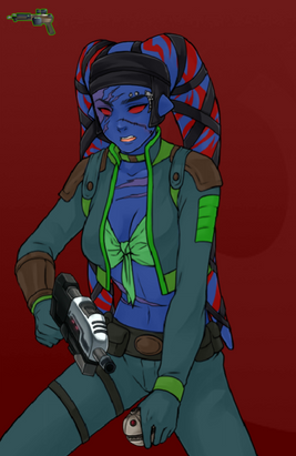 continued work on the Star Wars fan projectIt's that Mirialan Resistance Spy, trying her best to distract conscripts from her current activities that they interrupted