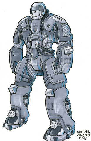 the suit reminds me of 's Gabriel, blended with Captain Amazing from Mysterymen, and just a hint of Issac Clarke from the Dead Space series. great work. i hope you do more with this character.