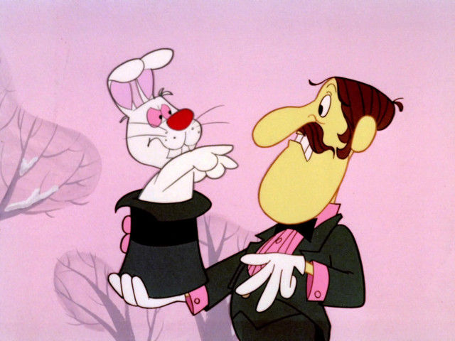 #cartoon #screenshot #humor #magic #magictrick #rabbit #rockyandbullwinkle #jayward #jaywardproductions #theadventuresofrockyandbullwinkle