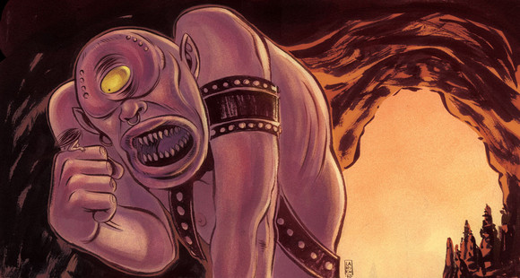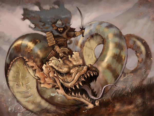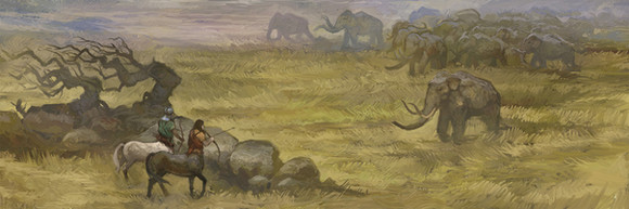 (C)2008 HachetteAnother piece from Beast and Beings, and another pretty archetypical beastie! This one is for a double page spread, so took some careful positioning to avoid the fold. There's a big bleed on both sides of the central live area, which I've cropped here.
