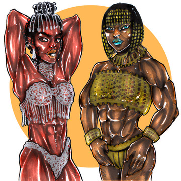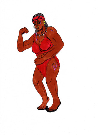 Seriously, I have no real back story for the large muscular chick. Originally, I was trying to come up with something like I normally do, but I couldn't think up anything. I did enjoy drawing a big muscular woman again though.Related content