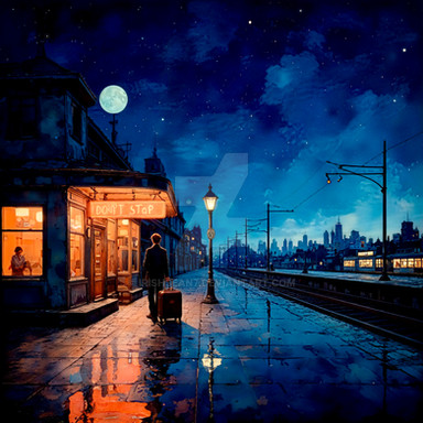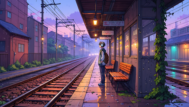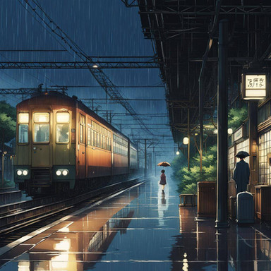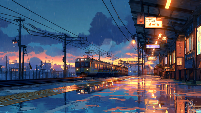 #anime #city #conceptart #cosy #digitaldrawing #digitalpainting #lowfi #night #rain #sad #somber #train #ghiblistyle #ghibliinspired
