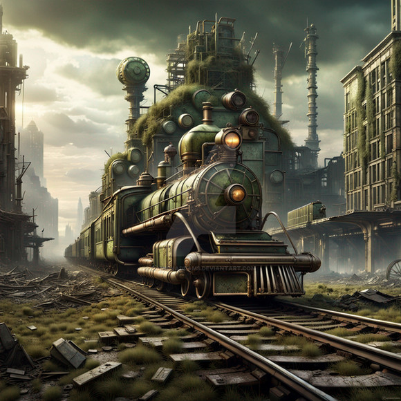 #anime #city #conceptart #digitaldrawing #digitalpainting #forgotten #nature #nier #ruin #tech #train #ghiblifanart #ghibliinspired