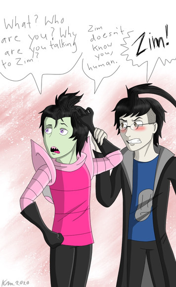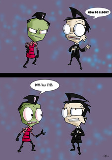 Hehehe. Invader Pan cops a feel, Dib is startled, Zim is cluless, and Invader Nimph is just disgusted. Hehehe. Hope you like.Related content