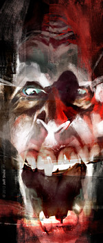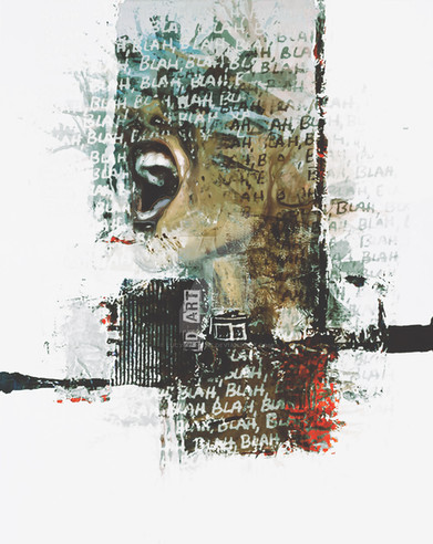 this piece feels more expressive to me than most of your others. the brown/b&w behind and around the head look fantastic. the white on the hair and neck, however, are too strong for my taste... they draw attention away from the more important aspects of your painting. great job all around.