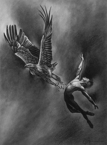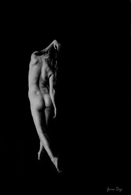 Love it! What are the dimensions? The dark background anchors the figure in a way I don't see in my work. I'm always using plain white backgrounds and I simply hate it. My work has been at a plateau for many years now, because I'm not advancing what I see in a photograph in any meaningful way. What I see here is where I want to go. The addition of the horns injects an otherwise fine drawing with fire, passion and imagination. And then there's the background. It brings a certain power to the scene, it threatens the figure, and adds to the sense of vulnerability you describe.