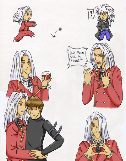 Aw, this is so cute! Poor Vash looks like he't about to choke! Hehe, I love this one!