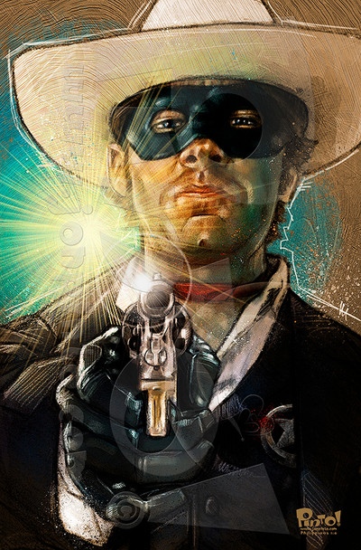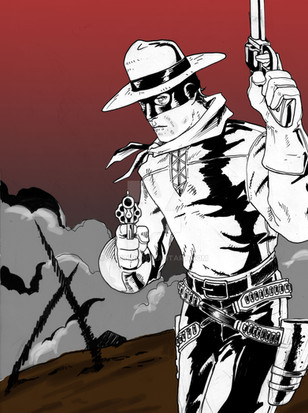 Many know of my LOVE of The Lone Ranger! A favorite of mine since my father introduced me to the character when I was really young. I have fond memories of watching re-runs of the show with him and my favorite Christmas present as a child was the Lone Ranger toy that still sits on my shelfSo what would MY Lone Ranger look like? I always pictured him all in black with a white shirt and hat and the only color would be the red neckerchief. And from my reading of the character, early publicity photos of him from his radio days he is dressed all in black so there is some history there. As much as I love Clayton Moore, I doubt a real western hero would dress in a skintight powder blue outfit.