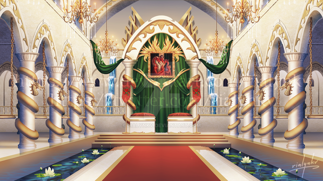 It's supposed to be a sort of throneroom where people enter the castle and greet the hosts (their royal evil highnesses Ignis and Aqua), so there aren't many details like furniture. It's like sort of a room for pre-party mingling 8D(I have no idea what I'm talking about).