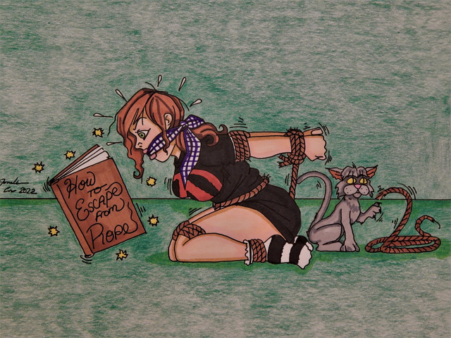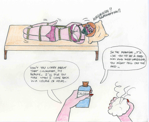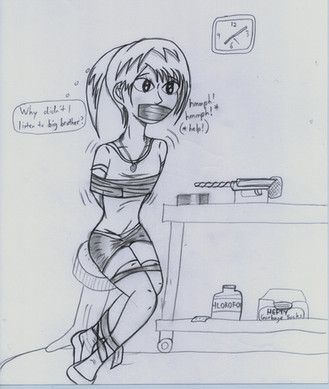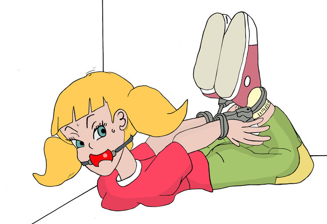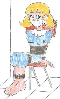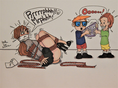 The ringing phone, and what looks like the girl yelling angrily into her gag.