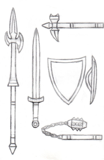 More Jorgenthall weapons, this one is a more common outfitting of the elite Dagon warriors.Experimented a bit with weaponry here as this is a fantasy setting, but the sword-staff is an actual weapon from history, I just moved it back from the renaissance into the medieval era and altered it to look as such.