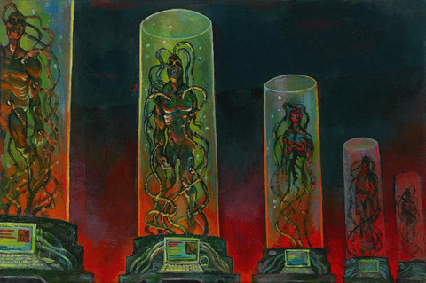 For real before I read the title to this piece, I honestly thought this was fan art for Swamp Thing. Either way still a cool and trippy looking painting.