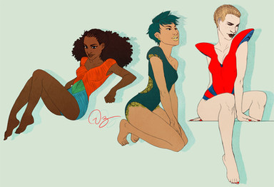 This is one of your best. Really great. I love the colors, the shading, and the poses. The one in the middle is fantastic, the feeling of motion you convey. A classic.