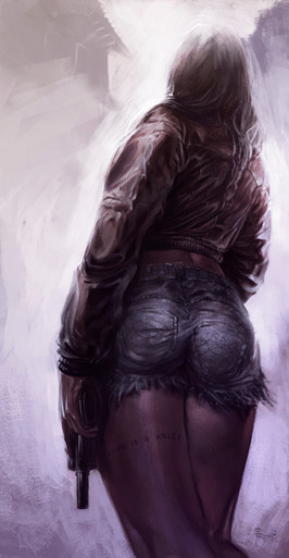 now this is quite a style!, out of phantasy-shaped woman, you make something way more real and even hilarious, the color aplication is awesome, reminds me a lot to GTA artwork