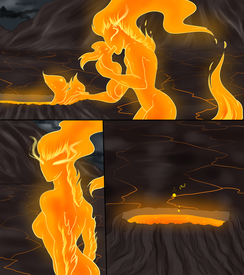 Actually, that's something I've been running through my mind. While Sumre can cool her magma like Fire elementals, so she can touch flammable objects or people without them bursting into flame (and presumably consume them as well), there is an alternative way for her to cool down, which is for her to consume large amounts of sulfur. This will turn her magma blue, and cool it to somewhere slightly above the boiling point of water.
