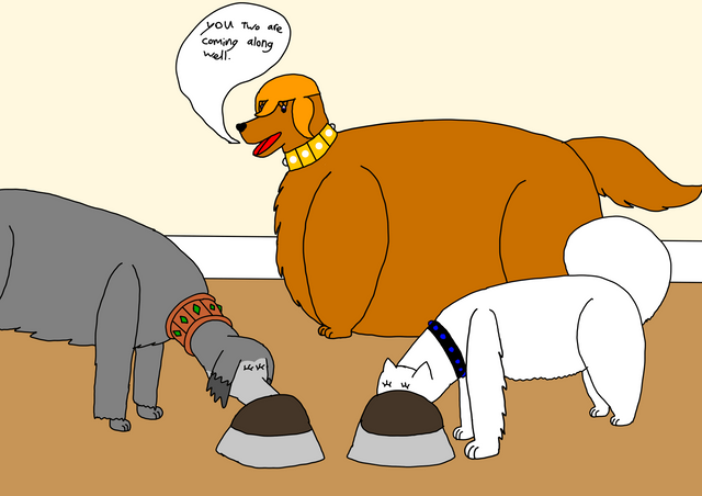 #anthro #belly #dog #eating #fat #muzzle #obese #roadrovers #shag #sheepdog #treats #weightgain #notmyart #overweight #rottweiler