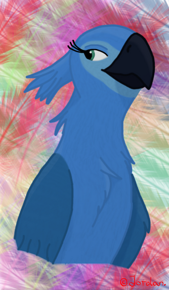 Another RIO fanart. This time black lines because I´m a lazy ass. Texture on Blu´s feathers are handmade (mousemade), took ages and is barely visible but well...Feather brushes used for BG (c) to whoever made them