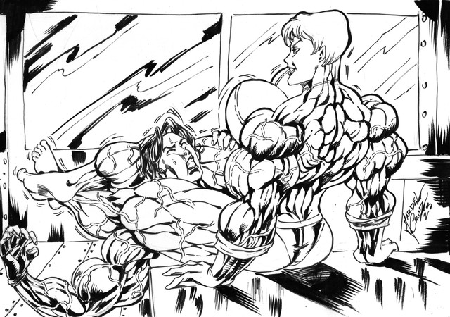 She got him in an arm submission lol, there's no leavin' from that. XD Great job on your drawing.