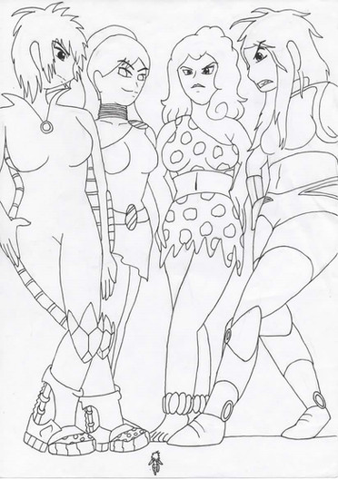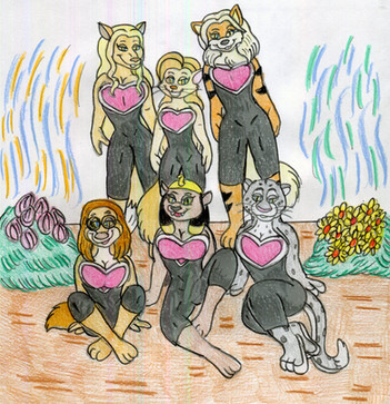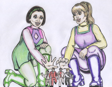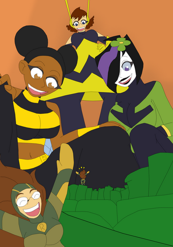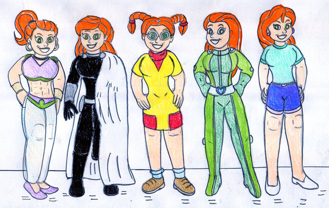 Request for RockyRock76, with several female characters with size-changing abilities, including his original characters, Micro Lass and Size Girl.Left to right - Giganta (DC Comics), Micro Lass, Wasp (Marvel Comics), Ginormica (Monsters vs Aliens), Shrinking Violet (DC Comics) and Size Girl.