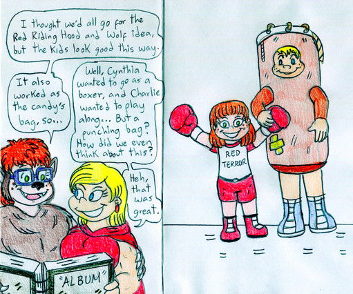 Dibujo de una de mis historias, El Carlitos Rojo, parodia de (obvio) La Caperucita Roja, con Angelica haciéndola de La Pequeña Niña Lobo.