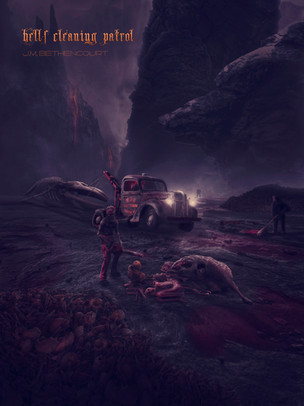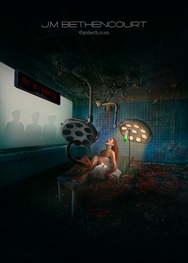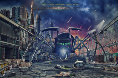 Fantastic concept. Very well executed considering the volume of stock used. Makes me think of 'Something Wicked This Way Comes' only even darker and more sinister. Are we supposed to see the carousel as turning or not? I am going to guess 'not'. And so, a version of this with the ride in motion, with lights-a-blur and bodies flailing, could be quite nice.