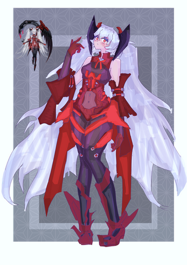 Now next part should be more straightforward: hair and face, which supposedly I have more practice than shiny stuff. I gotta shade the "blades" of the armor too, which I wanted to do so in a bit different way... And then let's see what I do with the background. <_<