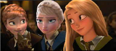 The Big Four Merida, Rapunzel, Hiccup and Jack Frost.The first day when they arrive at Hogwarts.