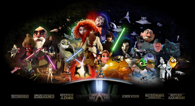 There are Mulan, Mushu and Cree-Kee, Merida and Hiccup on Toothless.