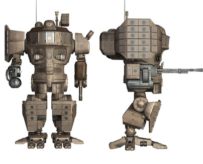 I've been listening to a lot of P.A.L. lately, usually during my morning run. All the hammering metal-on-metal rhythmic noise influenced this art piece big time. Or maybe it's just sometimes you gotta paint a big robot. I dunno.All reference came from my own stock.