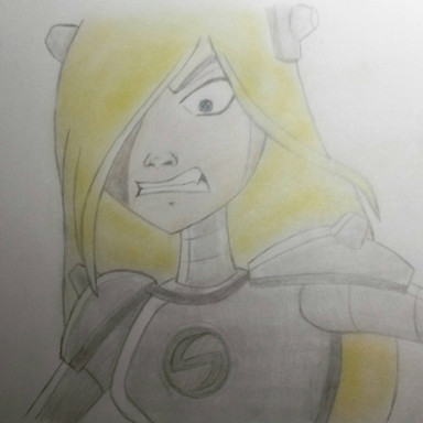 This is the sketch I did. Outlined with a softer lead pencil, and then scanned... I'll colorize later and show the final product.Related content