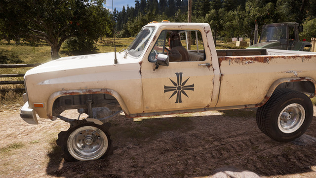 A screenshot of the modified, weaponized 1970 Kimberlite ZZT aka The Bootlegger in Far Cry 5, i took an early screenshot of it but i deleted it due to the less damage on the car.It's somehow based on the 2008 Dodge Challenger, not that quite anachronistic though, looks more like it reminds me of the Twisted Metal series.