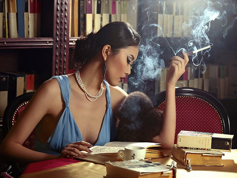 Girl is beautiful, but I don't like cigarette.