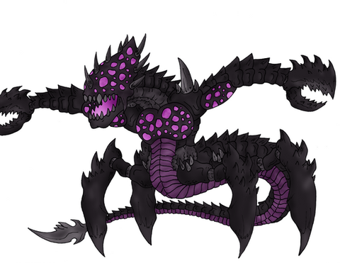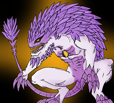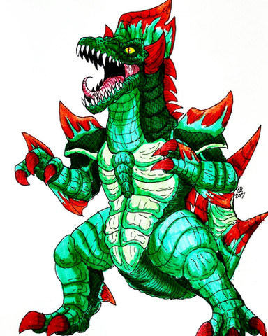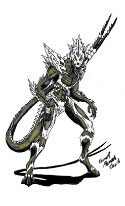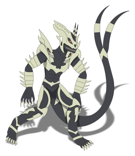 Well, I've been having trouble with Zyalgon so I decided put Rancorah up since I think he turned out great and is just a straight up KILLA! Originally, this guys design was a lot different. He had skin and his stomach was actually a mouth that would swallow his opponent, but it didn't look quite right to I had to change it. The reason I went with a skeletal look was because I've been in a Monster X kinda mood lately, not to mention that 's Bakurie inspired his design.RANCORAH