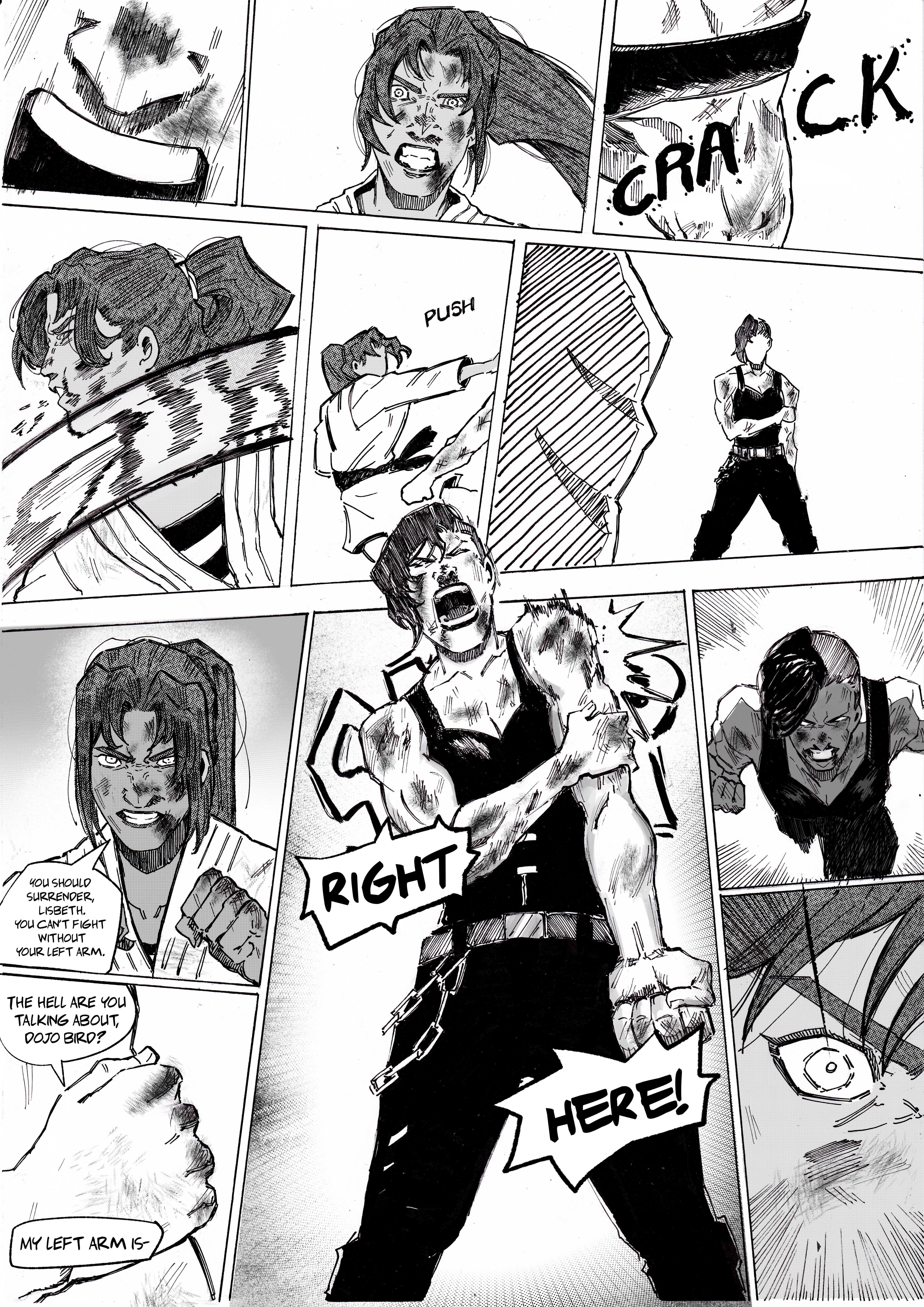 Here’s the inks for picture titled “Block this”. I wanted to do some Korra fan art with A) chi blockers and B) where Korra uses some other fighting skills besides bending to beat the bad guys. So, I came up with the idea of Korra doing rear naked choke to some poor henchman AFTER they have momentarily taken away her bending skills.