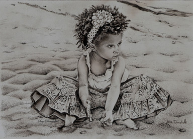In the original photo Kayla had her Barbie Doll up under her arms. All you could see were the legs of the doll. I thought it best to omit these in the drawing. Thanks for the kind words. I loved your gallery too.