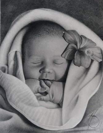 It has been a while. I've been well enough, creative slump notwithstanding, haven't looked sideways at a pencil for a couple months, bit of a danger zone that. And my niece waiting patiently for her baby daughter's portrait. I should sub it out to you.