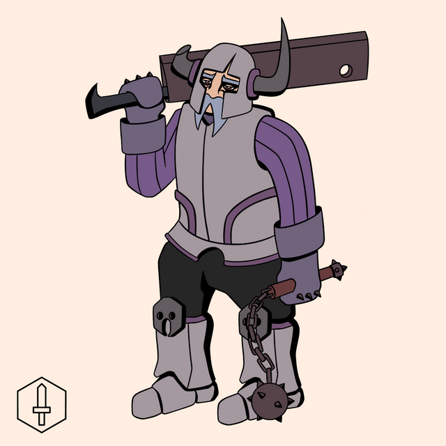 Staunch!This over-armored algophobe is always adding to his defense! Being terrified of injury or pain has him hefting a mighty shields and wearing multiple helmets whenever he catches a whiff of a dangerous altercation. Some say he hasn't taken any meaningful damage in decades!
