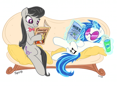 Vinyl Scratch and Octavia, my favourite background pony shipping and this just makes them look cuter