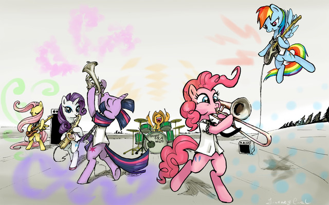 after her experience at Canterlot high seems Princess twilight started her own band back home.
