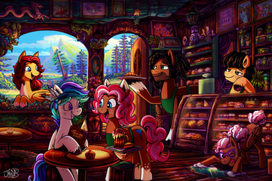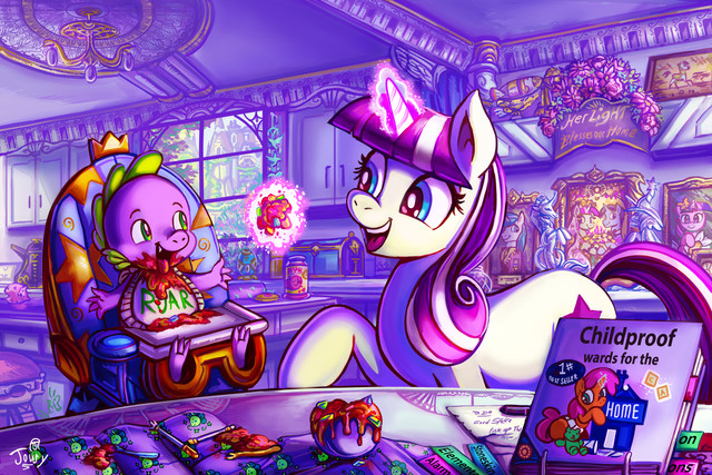 Oh Jowybean. The feels with this work is off the charts. Anyway, having said that here's my analysis. The LyraBon ship is one of the best, if not the best. To see them at home, baking - it's a real family atmosphere. In fact, at the time of this critique, I will have been preparing for a flight down to my hometown after not seeing my family for over 3 months - mane reason is for work but that's another story. Anyway, the use of line here is top notch. Colours very warm and homey. Lighting brilliant. Well done indeed Jowybean - YEAH!!!/)