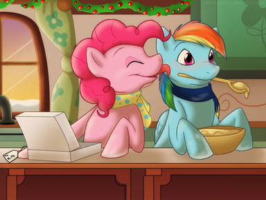 Absolutely it! Especially all the little details that add personality to their home: the dishes in the breakfront, the wall calendar (April is the best month in Equestria, as well!), the family portraits, the birdfeeder (and birds), the scrollwork on the stove, the mixing bowl and scale, cookie cutters, and the cherry and pumpkin icing ... just adorable!
