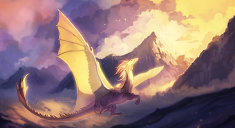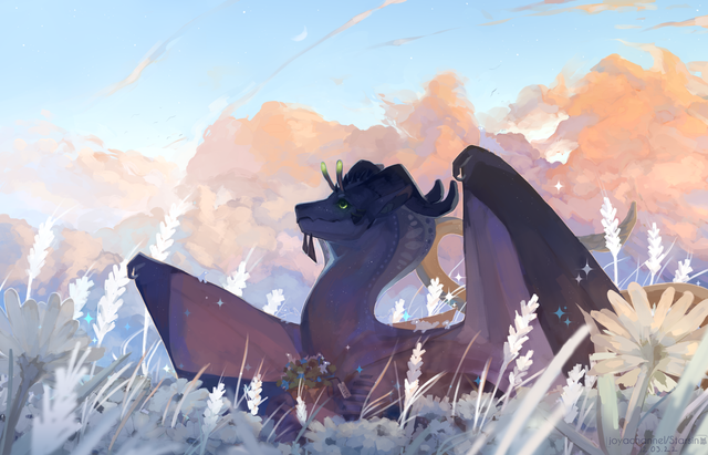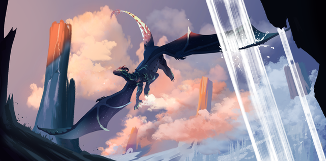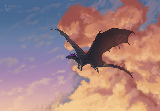 #clouds #commission #fantasy #glow #ruins #space #stars #wings #dragonoc #dragon